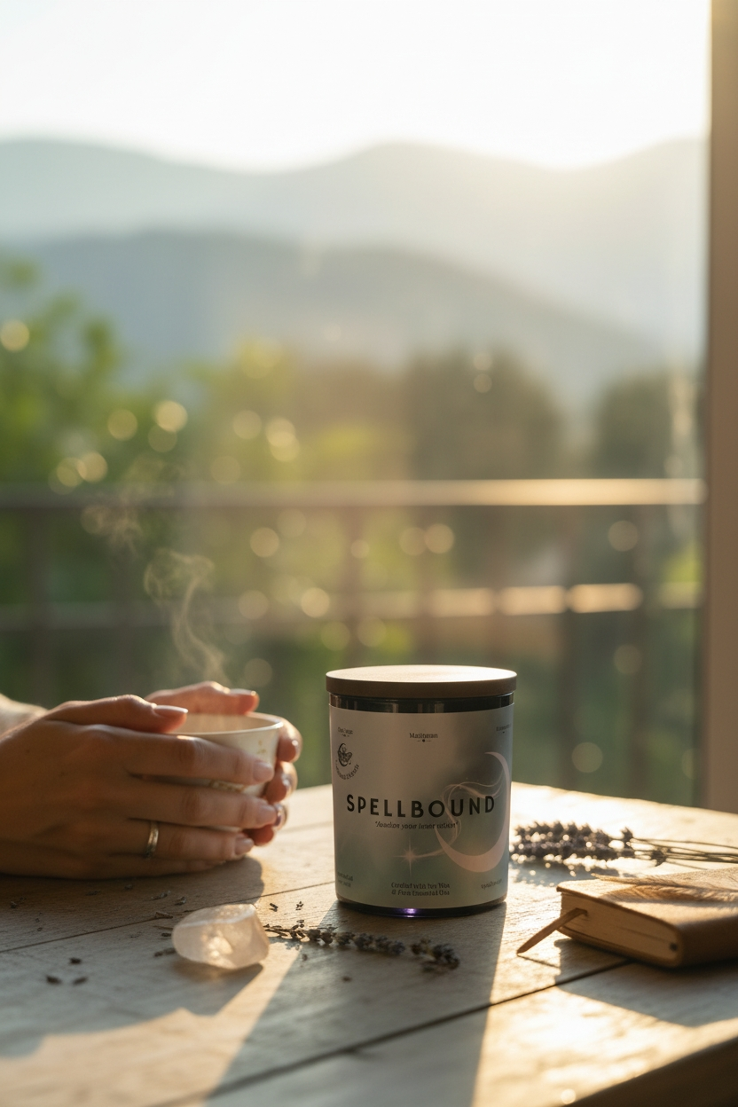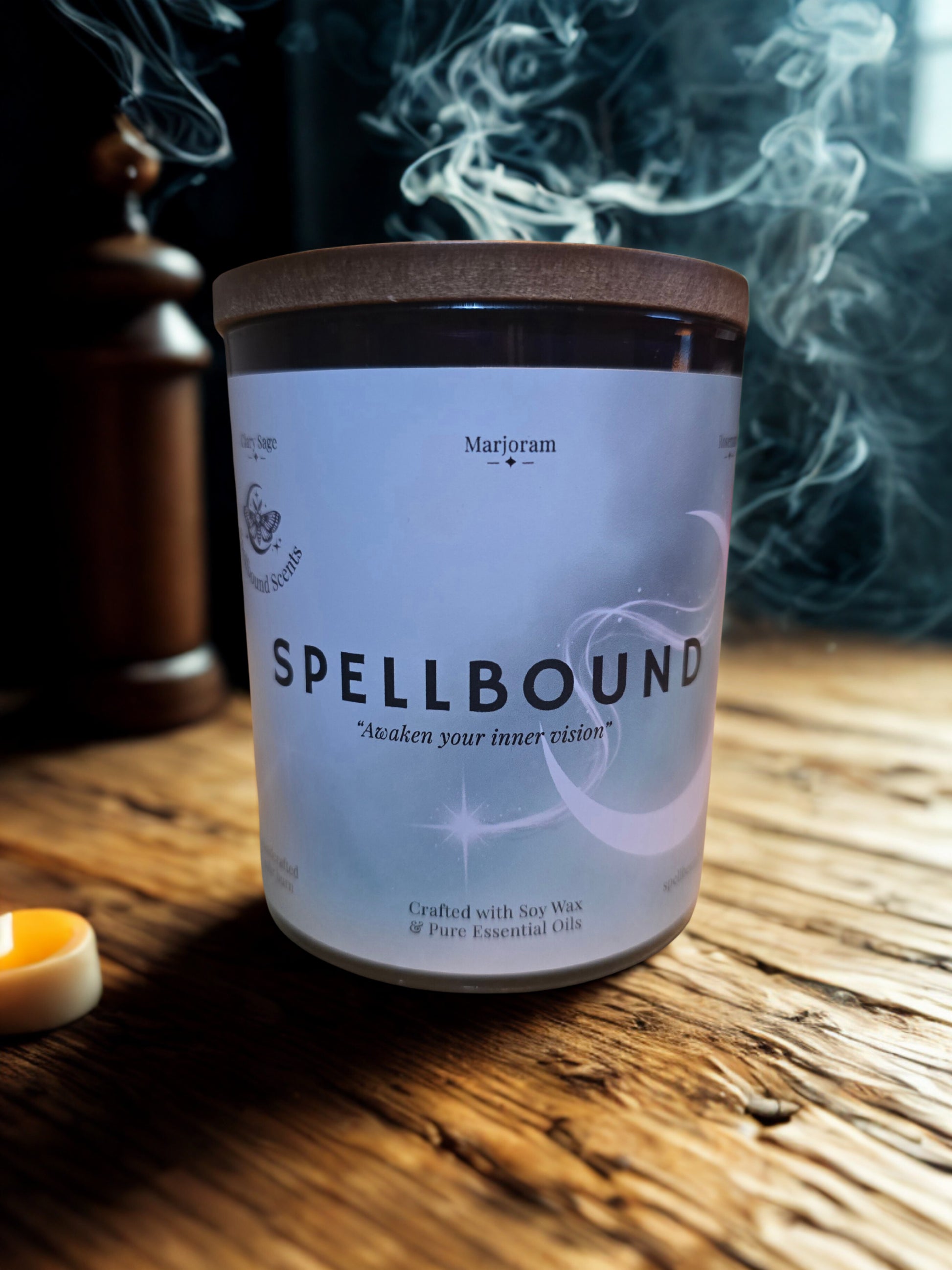 Cradled in a mystical amethyst glass jar, Spellbound is the heart of the Spellbound Scents collection — created to support clarity, intuition, and mindful calm.